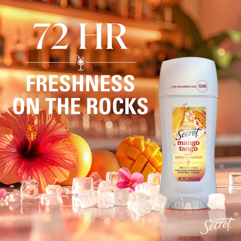 Introducing The Secret Miami Mocktails Collection, where vibrant scents meet powerful protection. Our Pro-Hyaluronic Power formula delivers 72-hour freshness on the rocks, ensuring you feel revitalized all day long. Experience zero proof sweat protection with our Fresh invisible solid, gliding on smoothly for a refreshing burst that lasts. Infused with pH Balancing Minerals, this product is your go-to, keeping you clean and confident from morning until night. Perfect for daily use, embrace a clean and confident feeling from morning until night!
