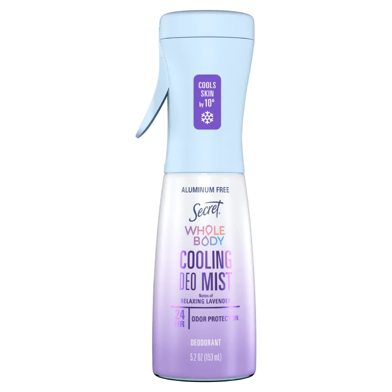 Overheated from stress, hormones, exercise, or everyday life? Secret's Whole Body Cooling Deodorant Mist instantly cools you down with a refreshing burst that drops your skin temperature by 10 degrees. Enjoy 24-hour odor protection while soothing and revitalizing your skin. This aluminum-free, pH-balanced formula is perfect for spritzing on your neck, chest, wrists, or feet whenever you need a refreshing lift. Embrace the cool and stay fresh with Secret!